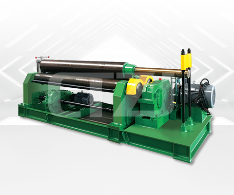本機結構型式為三輥對稱式,上輥在兩下輥中央對稱位置作垂直升降運動,通過絲桿絲母蝸桿傳動而獲得,兩下輥作旋轉運動,通過 減速機的輸出齒輪與下輥齒嚙合,為卷制板材提供扭矩。本機床的缺陷是需借助其它設備實現預彎。本設備可卷板厚1mm-40mm,板寬8000mm的板料。